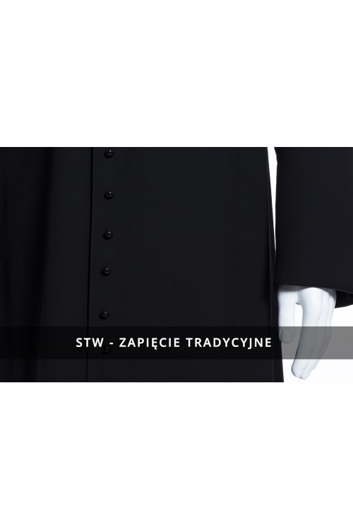 Light cassock in typical Roman cut. Classically sewn with three double pleats and pockets, with buttons or other fasteners. It differs from the traditional cassock because it doesn’t have any fillings, patches, cushions or lining. Best during summer, when travelling, on pilgrimages or on hot days.