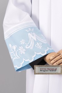 A beautiful festive chasuble with a decorative belt. The decoration - a liturgical motif in black - is in the front and back of the garment. This style is also available with a stole.