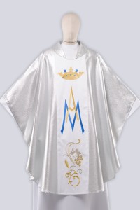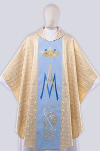 Our high-quality Marian Chasuble with Embroidery is characterized by elegance and comfort. Robes with a Marian motif are used on holidays and in remembrance of the Holy Mary. Our robes are decorated with noble embroideries in the form of a picture or name of the Holy Virgin Mary. The main colours are blue, white and gold. We offer Marian Chasubles with Embroidery with a wide range of patterns.