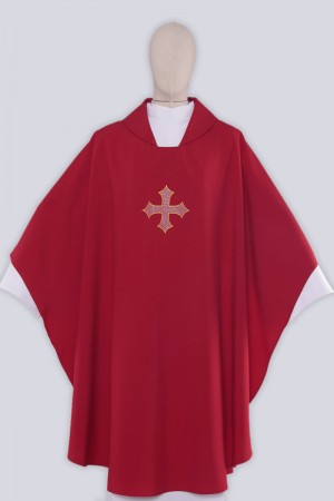 This chasuble is ideally suited for service on Palm Sunday, Good Friday, Pentecost, the Feast of the Holy Apostles, Evangelists and Martyrs, Masses related to the Holy Spirit (e.g. Confirmation Mass), Passion of the Christ Mass, and Holy Cross Masses.