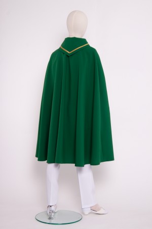 Chic, colorful, long pelerine with a gold band. An interesting pelerine with a poined dcollar for altar servers, lecturers, choirs or musical church groups. This model has a point collar and is fastened with strings. The pelerine is made of a nicely-draped, crease-resistant fabric. Available in different lengths from midi to maxi - from 60 to 130 cm. Made of gabardine (100% polyester).