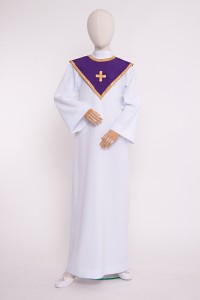 The choir sets made of light and nicely fitting gabardine are characterized by simplicity and moderation. The robes, designed to emphasize the beauty of sacred music, consist of a removable collar decorated with a golden ribbon and a long alb with a band collar. You can choose sets in many colors, among others: red, purple, black, blue, pink, burgundy, yellow and green.