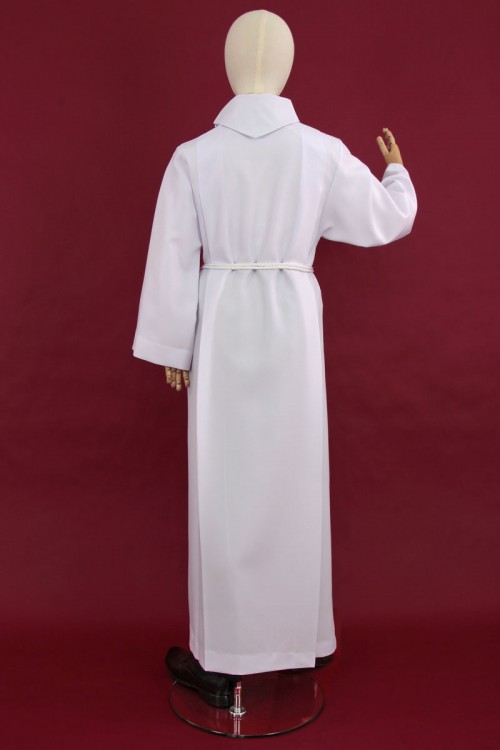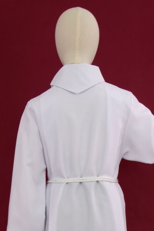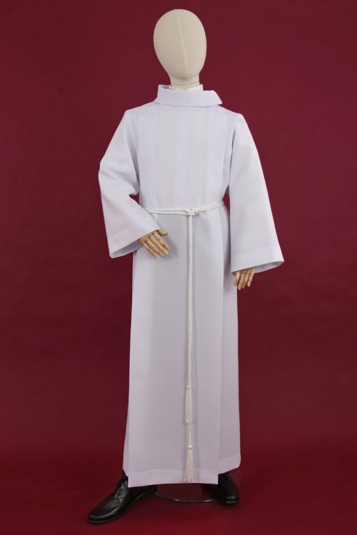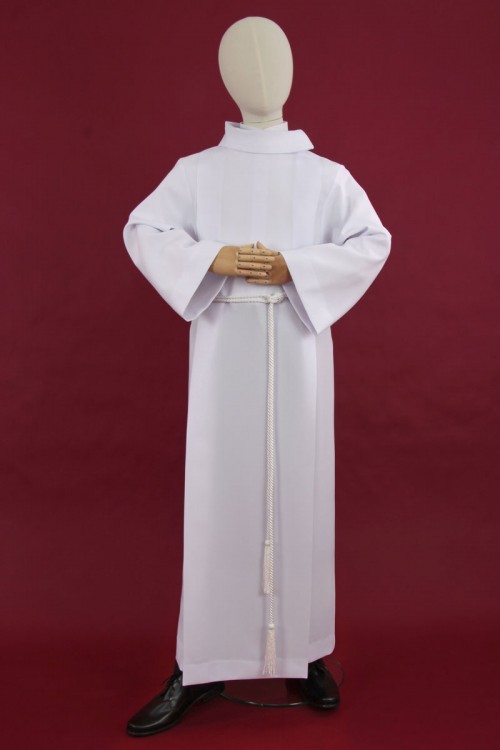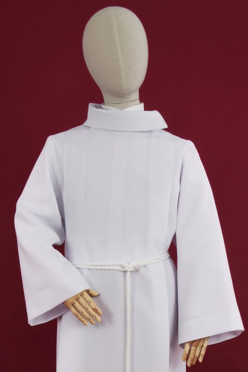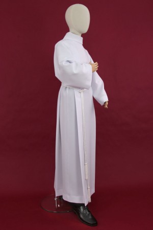 Our white alb for lectors with shoulder pads is one of our products for lectors. The lectors’ alb is produced with a zipper located on the shoulder. The garment is particularly elegant thanks to its golf collar. Our clothes for lecturers or altar servers are made of the highest quality fabrics so that they can serve our customers for a long time. Albs are available in gabardine, cotton with viscose or wool-polyester. You can also buy a cingulum for the albs.