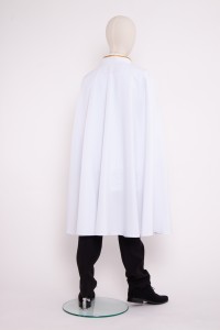 Our chic, long pelerines with stand-up collar are the perfect choice for every choir. We have decorated the robes on the front and on the collar with a golden ribbon. The pelerines are made of light and nicely fitting gabardine and come in eight lengths - from 60 to 130 cm - so they look perfect on both younger and older members of the Schola. The white or blue pelerines are tied with strings.