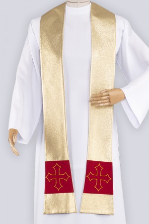 This stole is ideally suited for service on Palm Sunday, Good Friday, Pentecost, the Feast of the Holy Apostles, Evangelists and Martyrs, Masses related to the Holy Spirit (e.g. Confirmation Mass), Passion of the Christ Mass, and Holy Cross Masses.